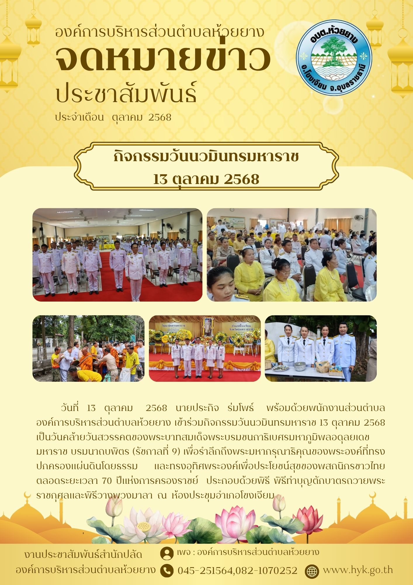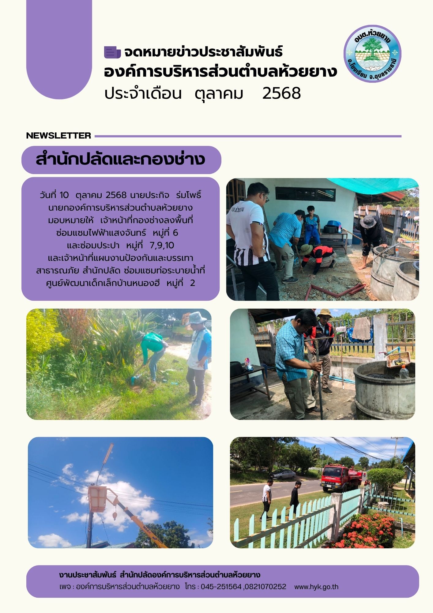 จดหมายข่าว อบต. ห้วยยาง ประจำเดือน ตุลาคม 2568
